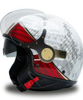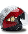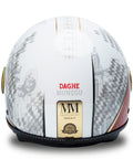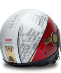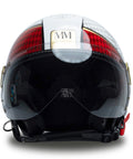 Le casque indépendant de Jet MM est renouvelé dans une splendide version blanche avec des détails rouges, or et noirs, ornée de finitions d'or chrometech exclusives et enrichies par les détails caractéristiques qui distinguent les casques de la ligne MM.
