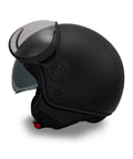 Le Casque Jet A-Ventura Noir de la ligne Monocromo allie la qualité de fabrication MM Independent à la couleur la plus universelle et intemporelle. Ce n'est pas un noir quelconque : c'est du noir mat absolu, profond et velouté, sans reflets. Entièrement fabriqué en Italie avec une calotte de dernière génération et double écran, c'est le choix pour qui recherche élégance discrète, polyvalence totale et un casque qui ne se démode jamais.