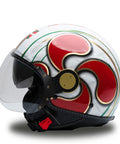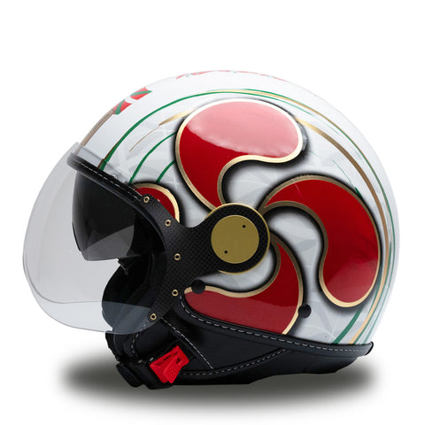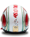 Le casque indépendant de Jet MM est renouvelé dans une splendide version blanche avec des détails rouges, vertes et or, ornée de finitions d'or chrometech exclusives et enrichies par les détails caractéristiques qui distinguent les casques de la ligne MM. Cette version est unique et n'a pas de variantes de couleur.