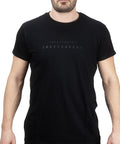 T-shirt noir avec une écriture indépendante en deux couleurs Veanti Black et Gold.